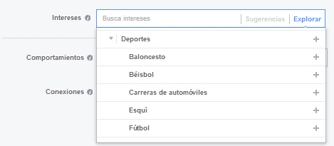 Para segmentar por datos demográficos,es tan sencillo como rellenar ubicación, edad (13 – 64 años), sexo e idioma del público en el que estáis interesados. En la imagen se aprecia un campo que se puede desglosar: “más datos demográfico”. En este apartado podréis filtrar por los siguientes campos: relación, educación, trabajo, afinidad étnica, generación, padres, política o acontecimientos importantes.